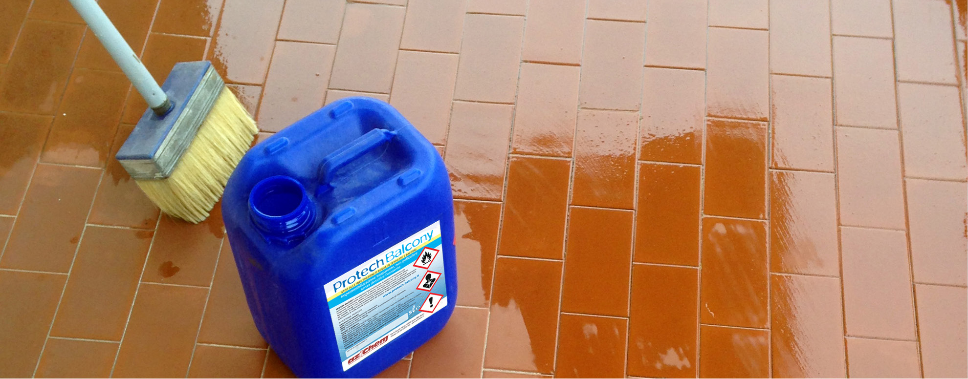 PROTECH BALCONY este o soluție non-peliculară și transparentă care evită îndepărtarea pavajului existent. Aplicabil pe clincher, gresie porțelanată, ciment, ceramică, pietre și aglomerări brute, penetrează și sigilează fisurile de până la 1 mm, lăsând suprafața imediat utilizabilă. Este insensibilă termic și rezistentă la radiațiile UV, are un rezultat elevat și o eficiență de durată.